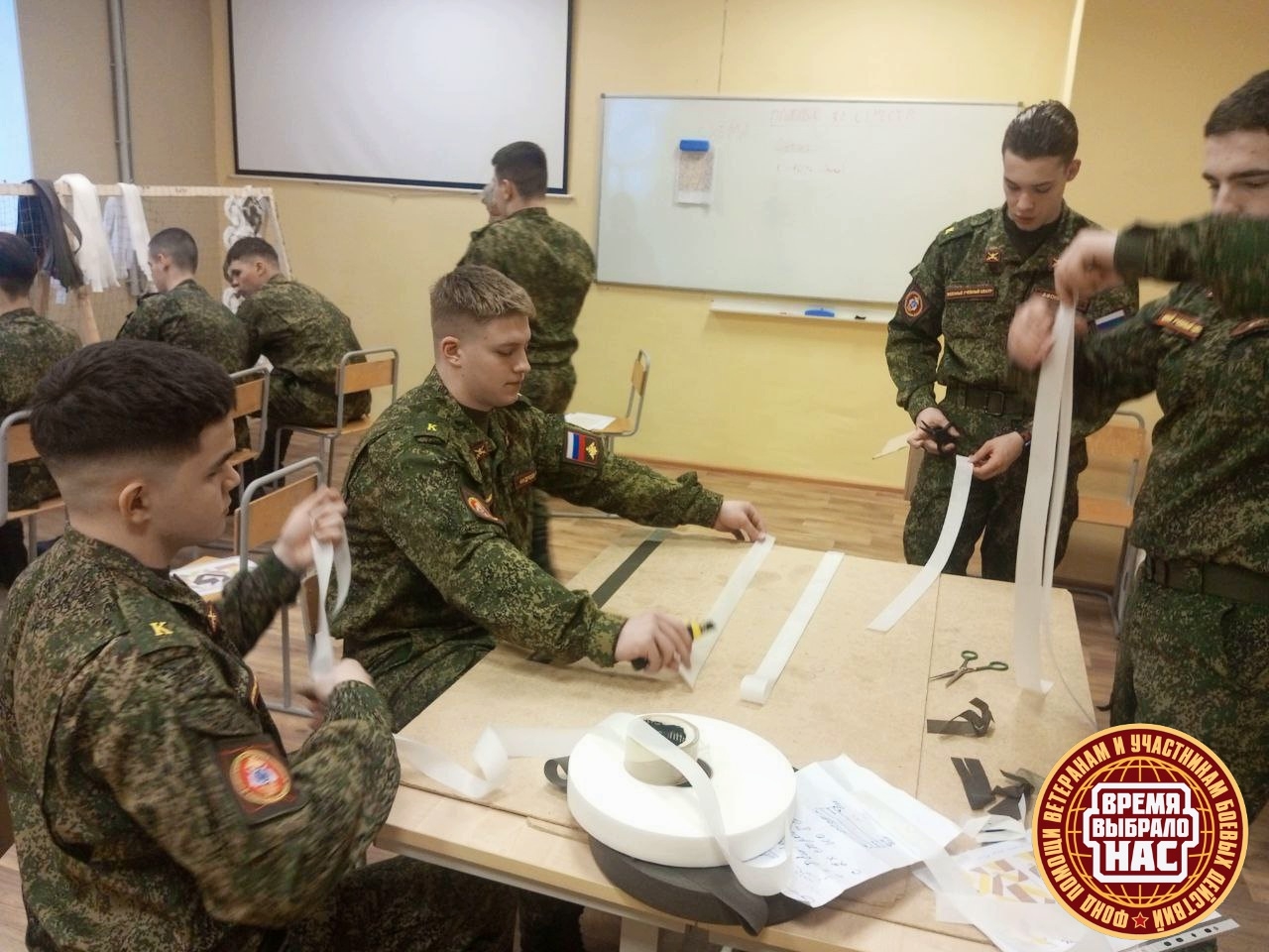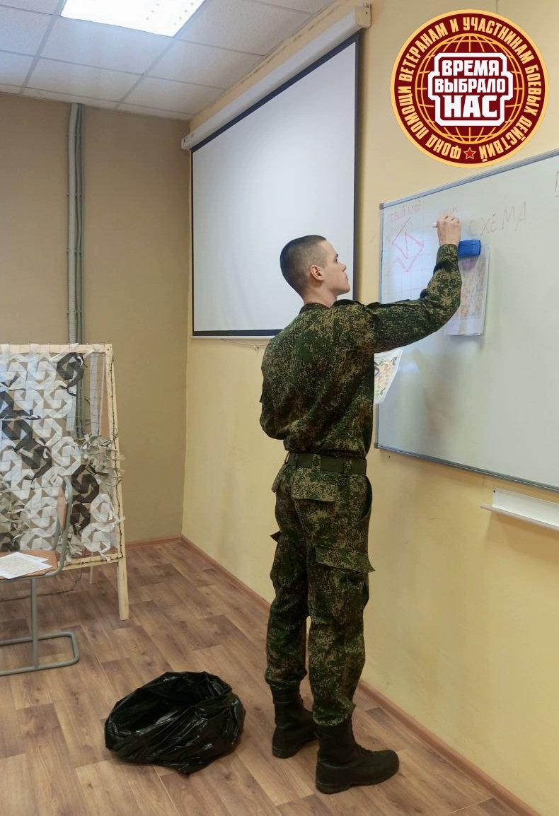 С радостью хотим сообщить вам, что это благое дело имело очень хорошее продолжение! На прошлой неделе в здании ВУЦ была открыта новая точка по плетению масксетей. Фонд "Время выбрало нас" взял на себя её оснащение всеми необходимыми расходными материалами, а Анна Герилович ещё раз показала ребятам как всё нужно правильно делать. И надо признать, что процесс пошёл замечательно! Курсанты с энтузиазмом и увлечённостью принялись за плетение, ведь они прекрасно понимают, какую пользу фронту принесут изготовленные ими сети.