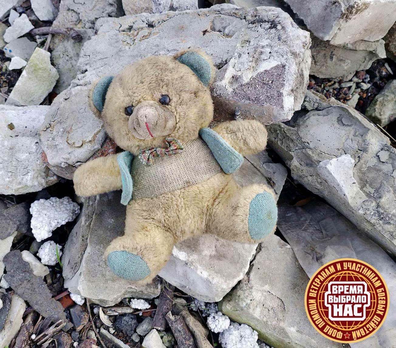 Вот такого вот чумазого и замёрзшего медвежонка команда Фонд "Время выбрало нас" нашла на развалинах Авдеевки. Не позволило сердце пройти мимо этого малыша. Мы подобрали его, обогрели, отмыли, и теперь он вместе с нами катает на войну.