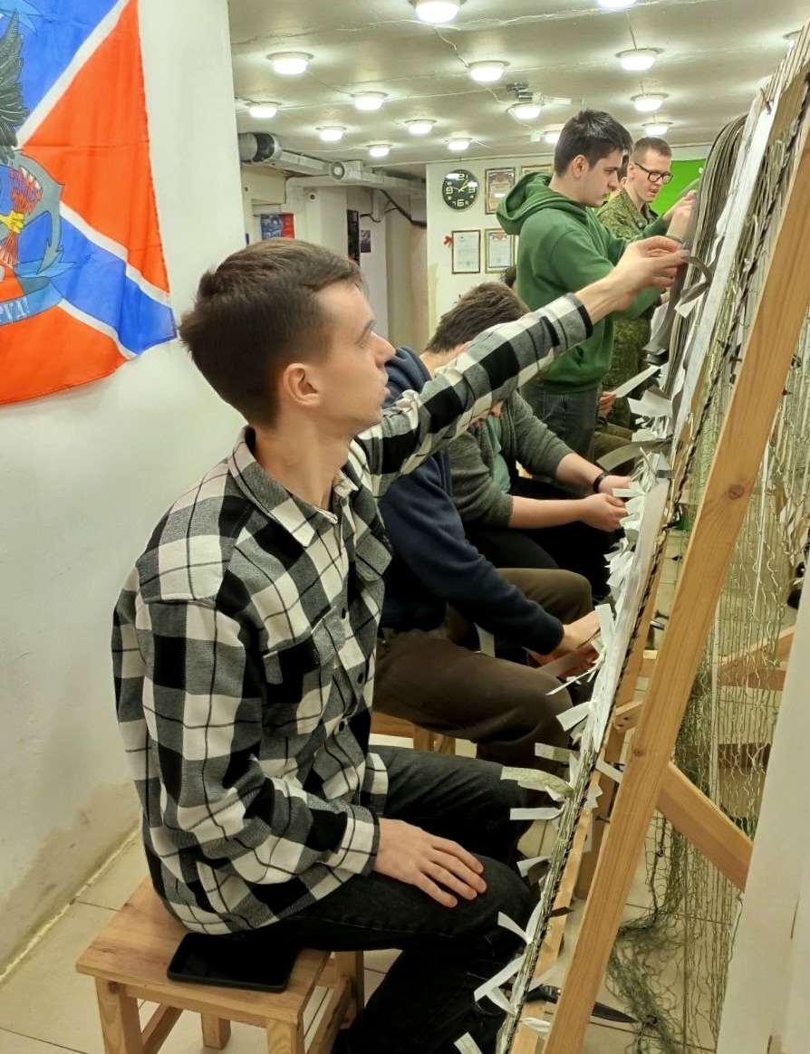 Так вот. Нашими гостями в тот день были курсанты военно-учебного центра Российского государственного гидрометеорологического университета (РГГМУ). Командование ВУЦ и обучающиеся там ребята сами проявили инициативу и захотели научиться плетению масксетей для того, чтобы приносить реальную пользу фронту! И конечно же мы с удовольствием показали им все ступени этой очень нужной для Отечества работы, а сами курсанты проявили себя на мастер-классе с самой лучшей стороны.